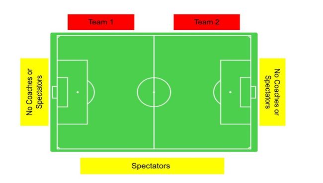 1. Players need to be able to hear instruction from coaches and coaches need to be able to clearly communicate with the players. Referees need to be able to identify and communicate quickly with coaches. It can become loud and confusing for players, coaches and referees to have spectators on the same side as the teams.
