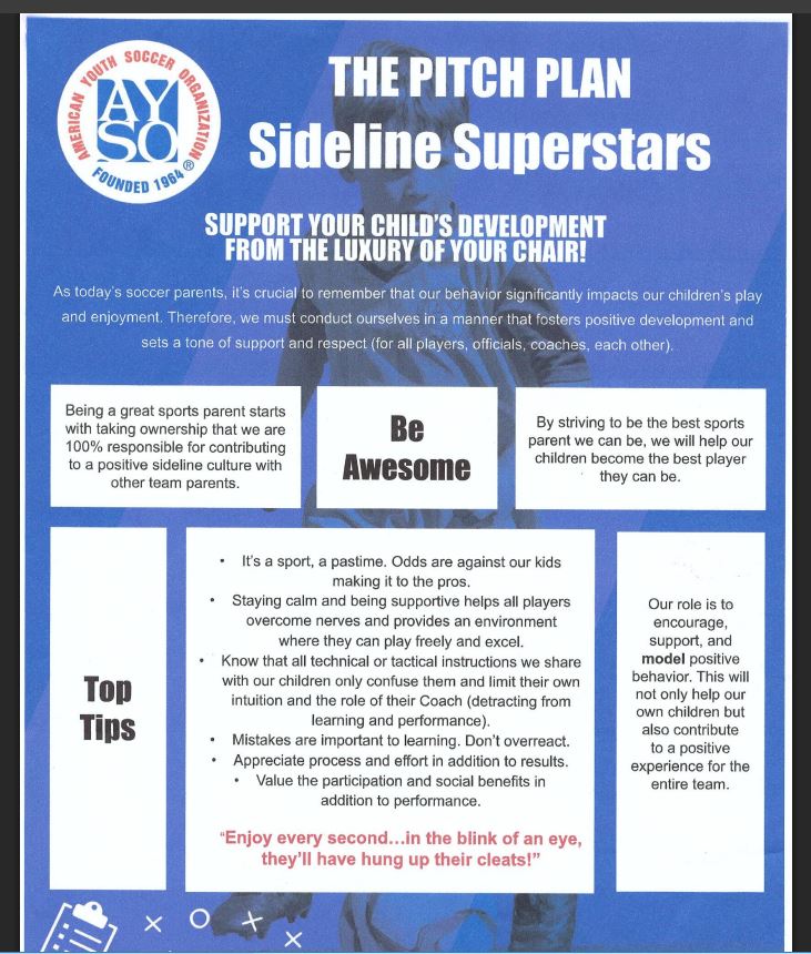 2. Safety: Coaches need a visual of the team and know each player is accounted for. If players have left the sidelines to sit with family, it causes unnecessary confusion when coaches are calling for subs or making line changes. This also helps players stay engaged in the game and with their teammates.